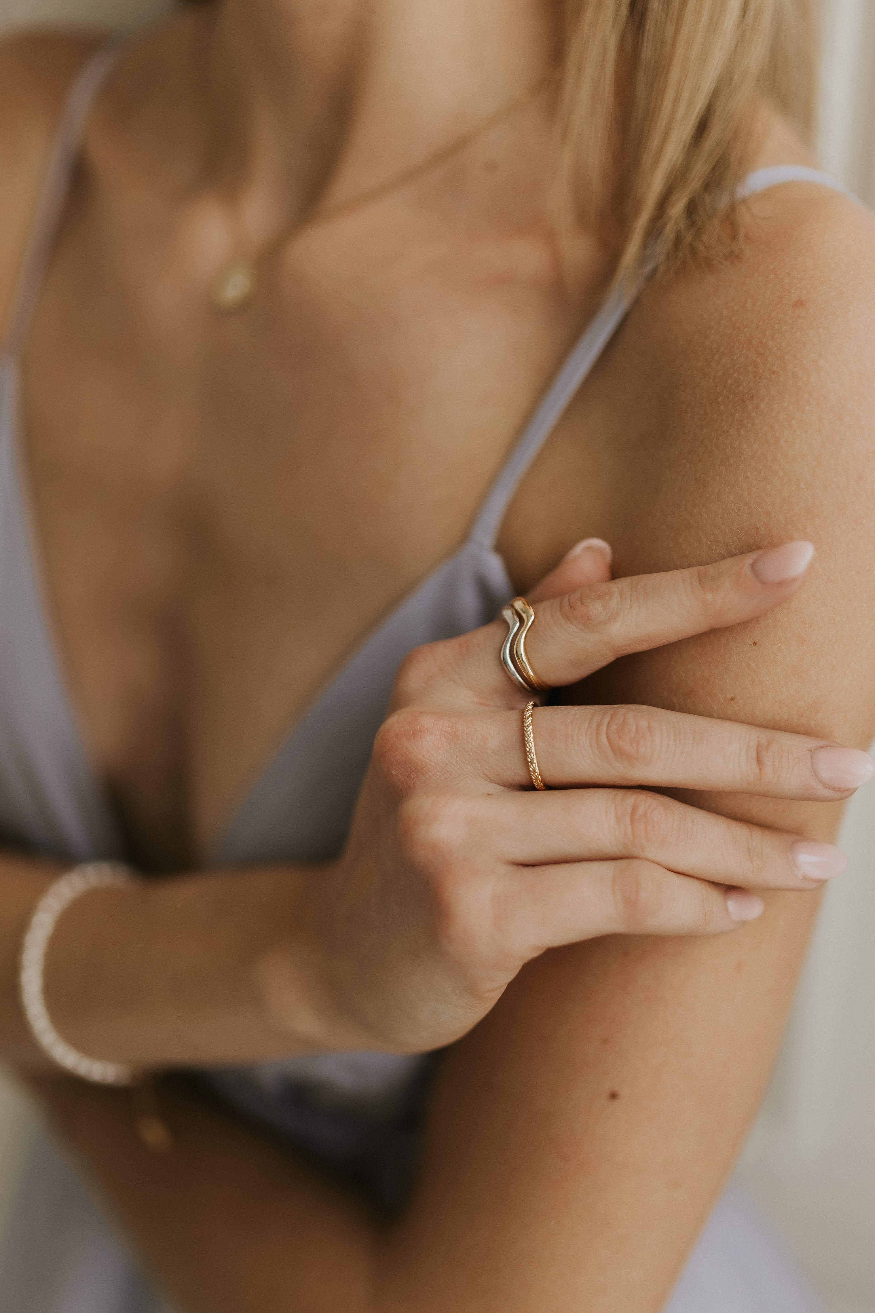 Notre bague Dolce Vita te permet d'agencer à merveille le doré et l'argent. Il s'agit de deux bagues ajustables que tu peux porter superposées ou séparément.
