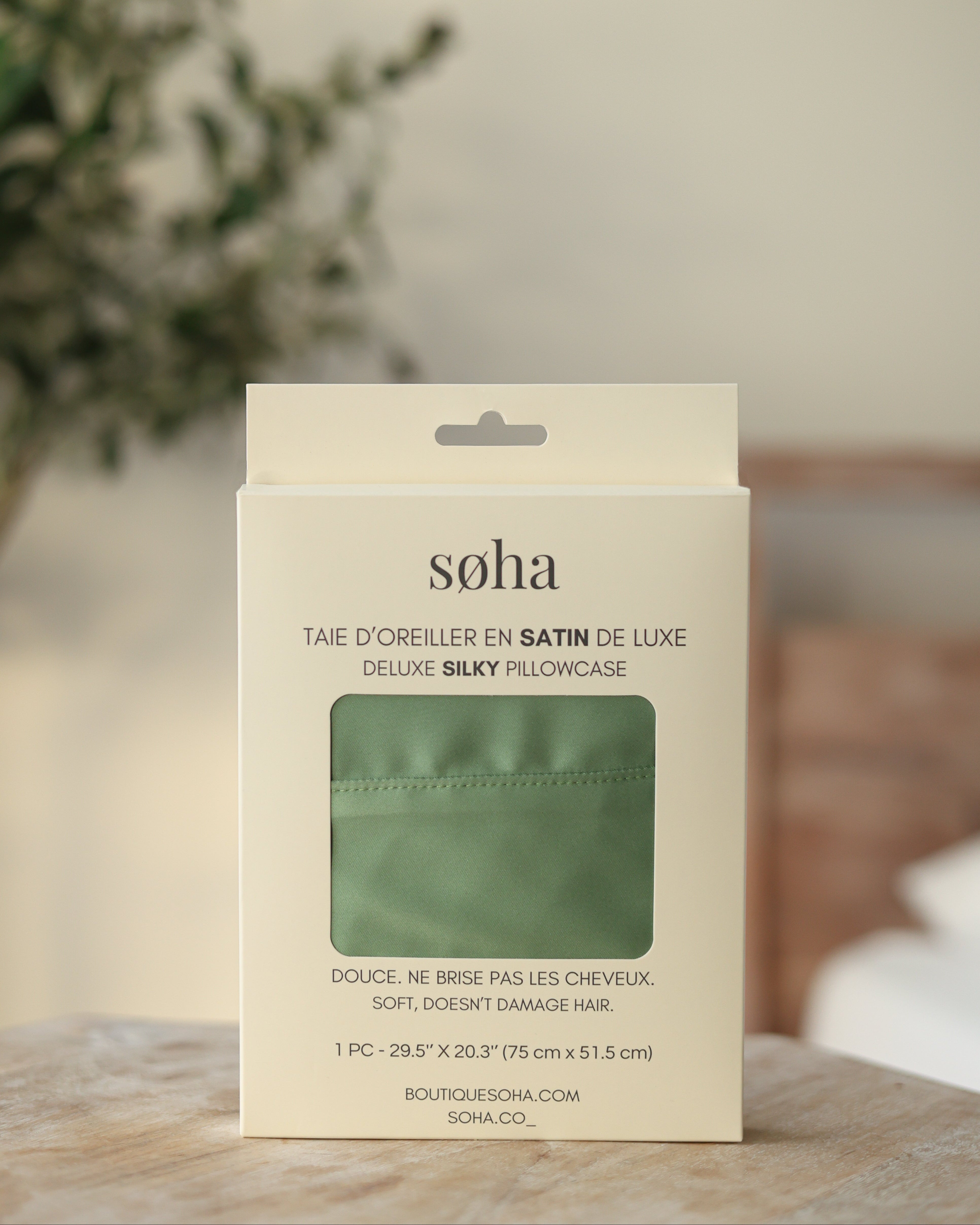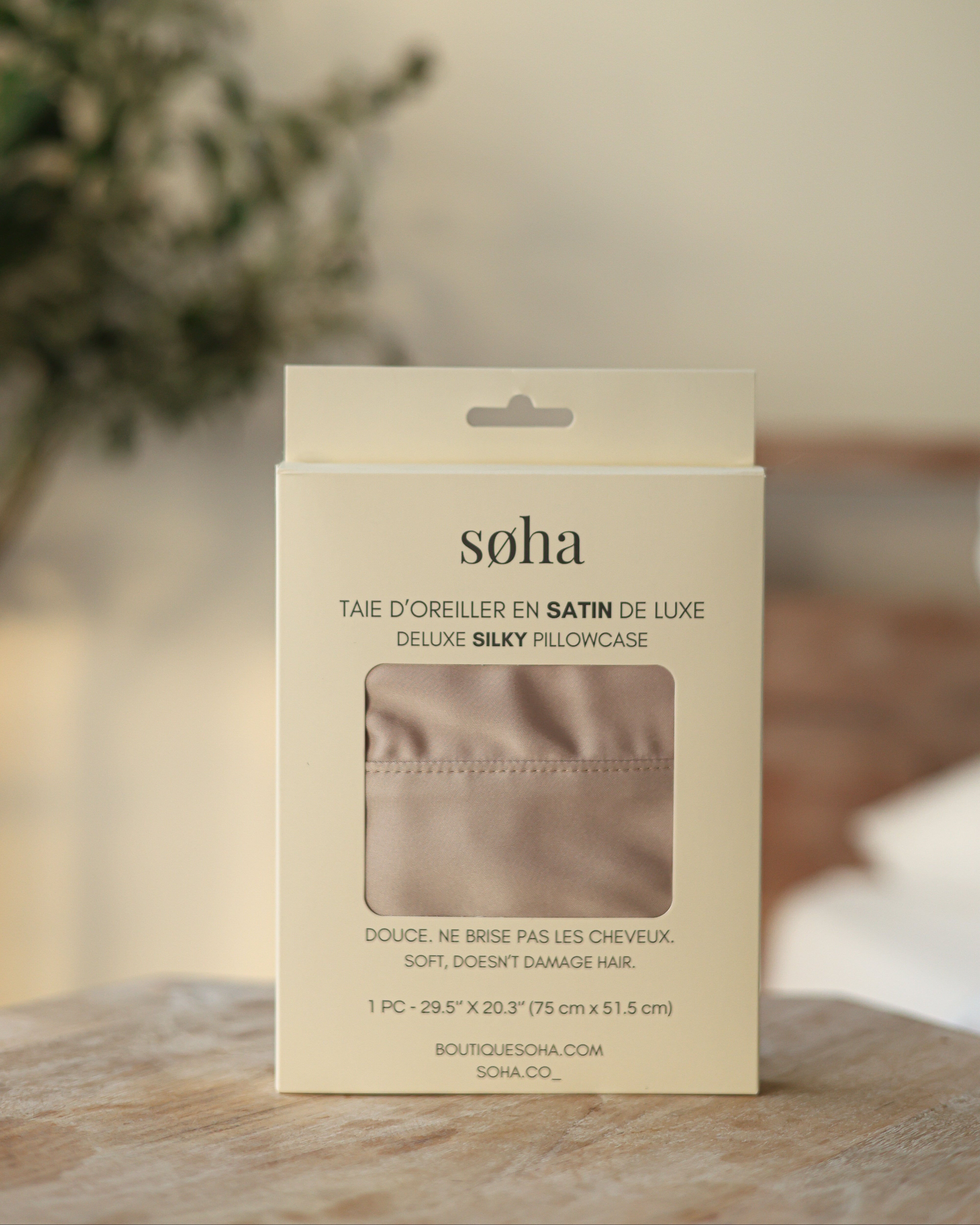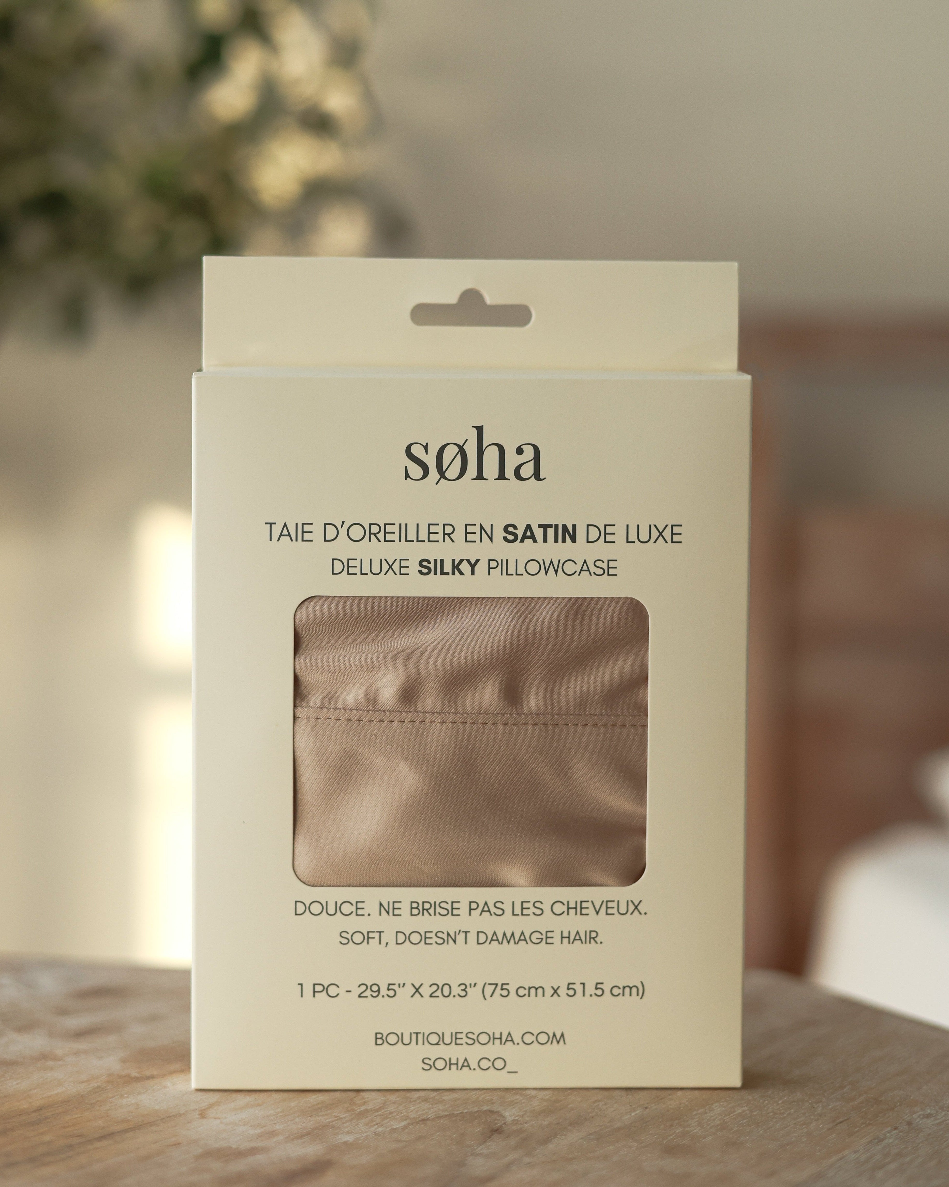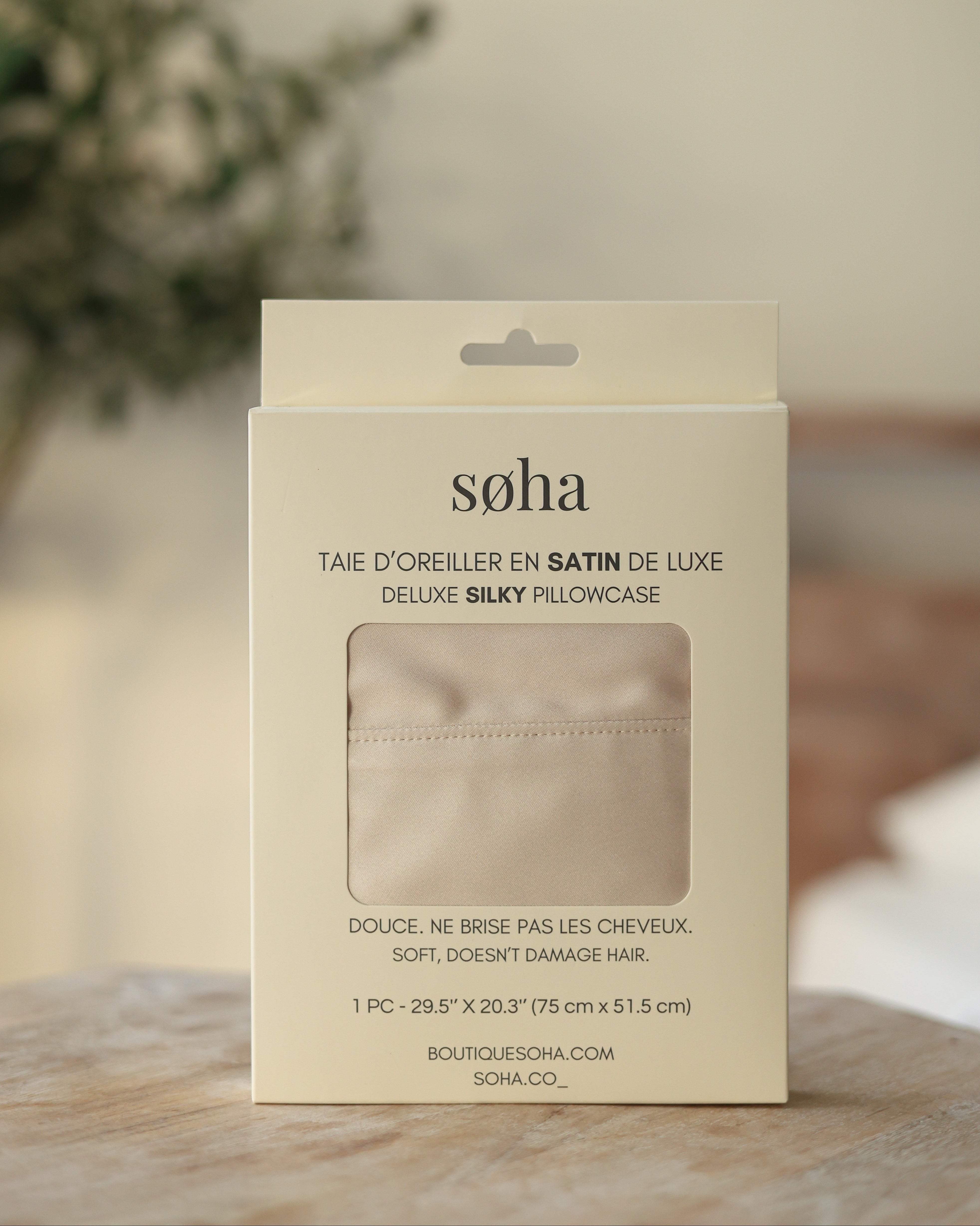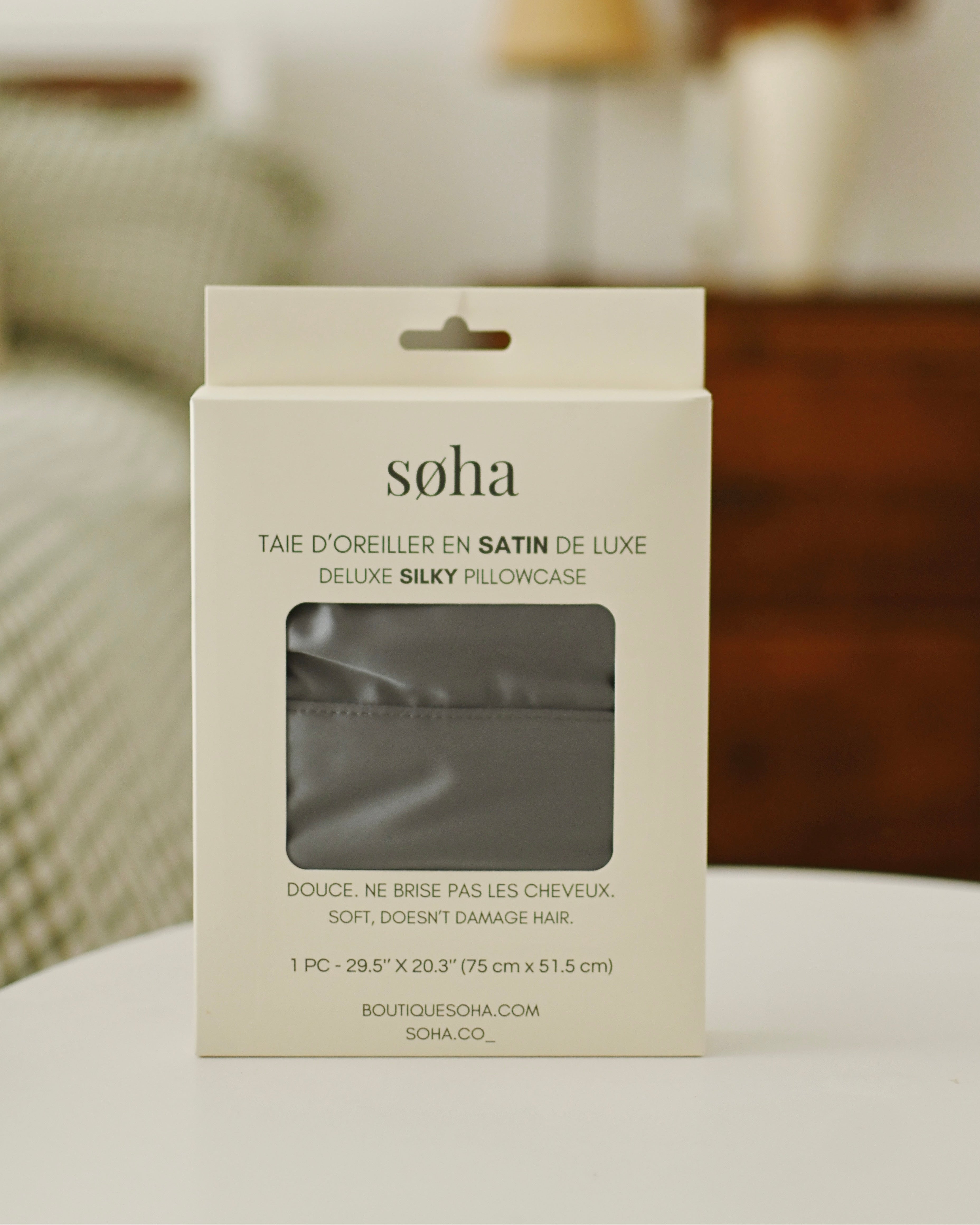 Découvre nos taie d'oreiller en satin fabriquées minutieusement à la main au Québec.