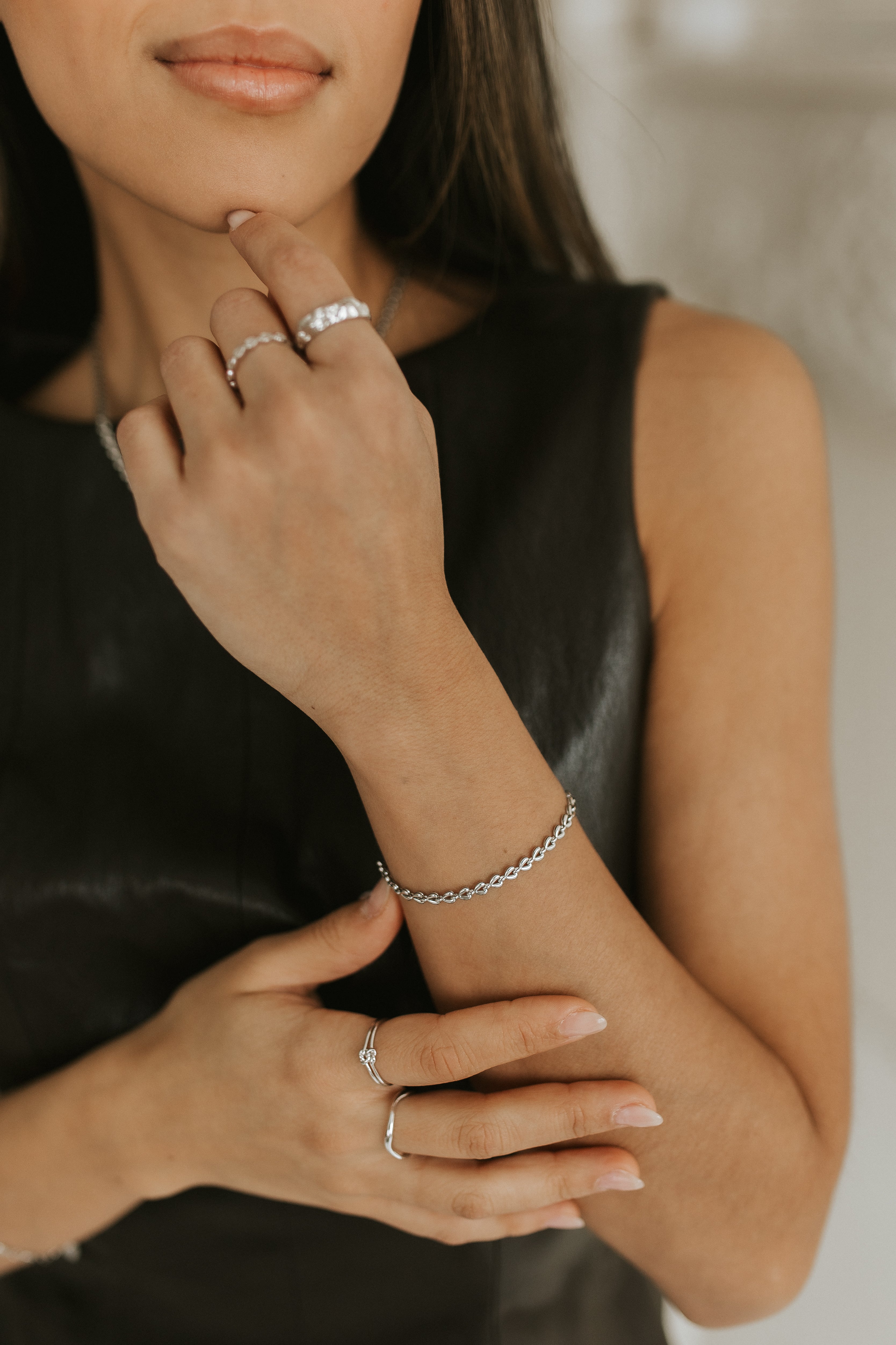 Notre bague Elia, avec ses anneaux doubles formant un nœud délicat pourrait vite devenir un de tes accessoires favoris.