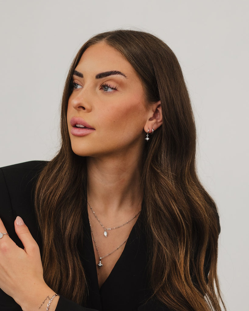 Materials: Rhodium-finished Sterling Silver / 925 (anti-tarnish treatment) and zircon centerpiece — see our Materials and Care section.
