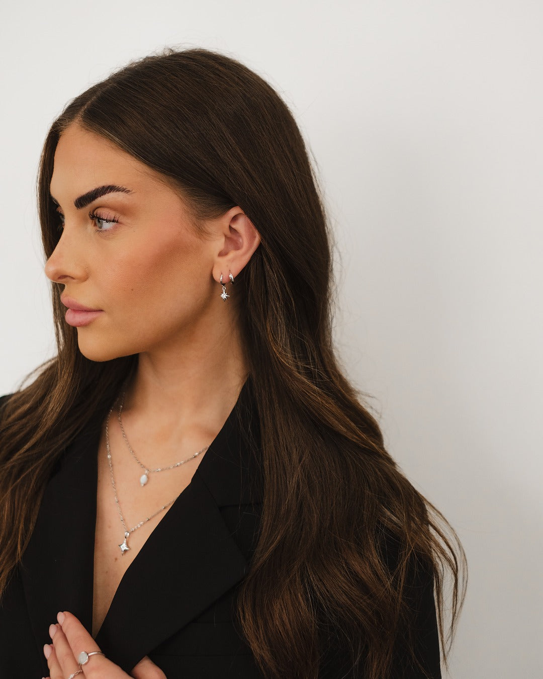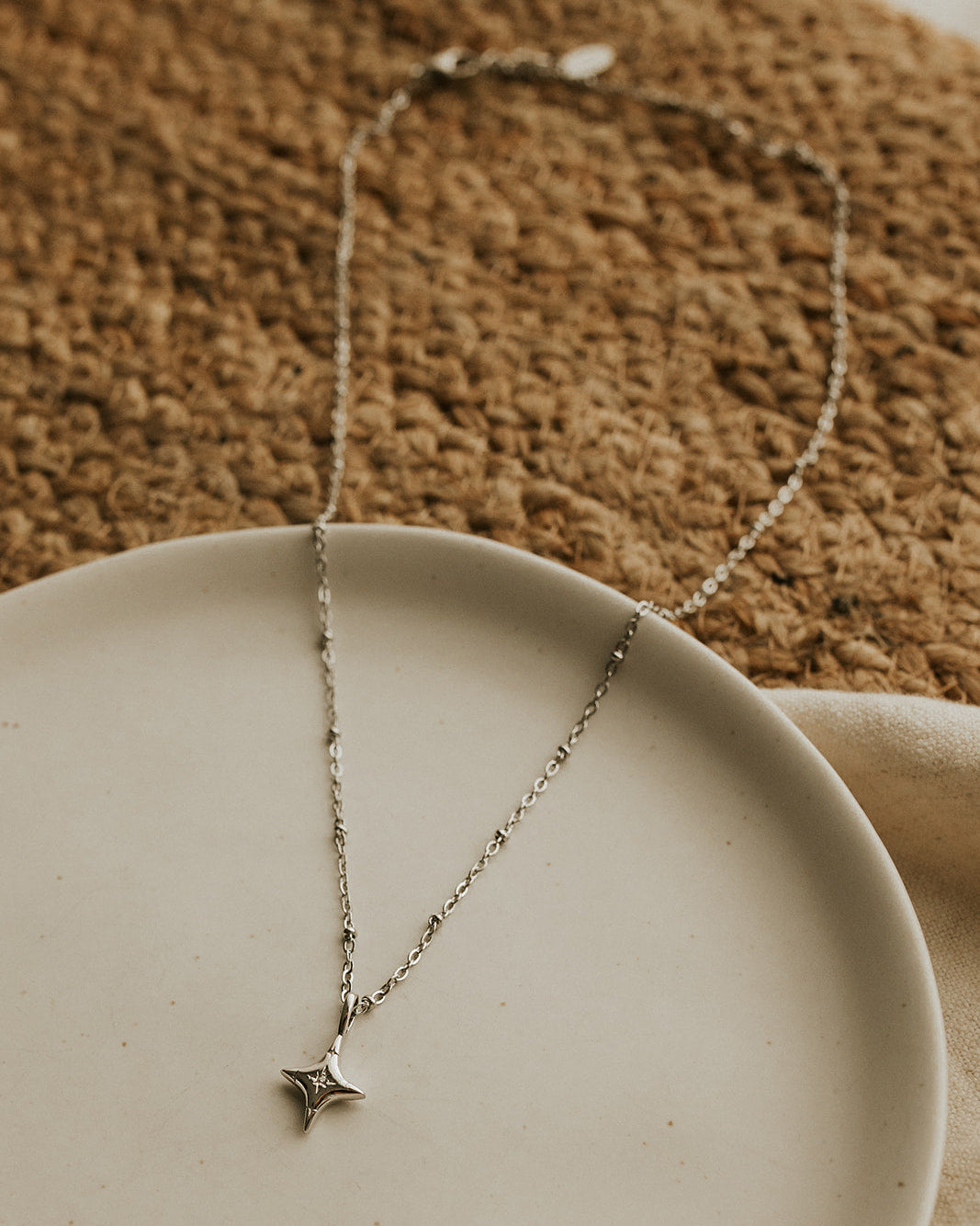 Materials: Stainless steel chain and Sterling Silver / 925 pendant with rhodium finish and zircons — see our Materials and Care section.