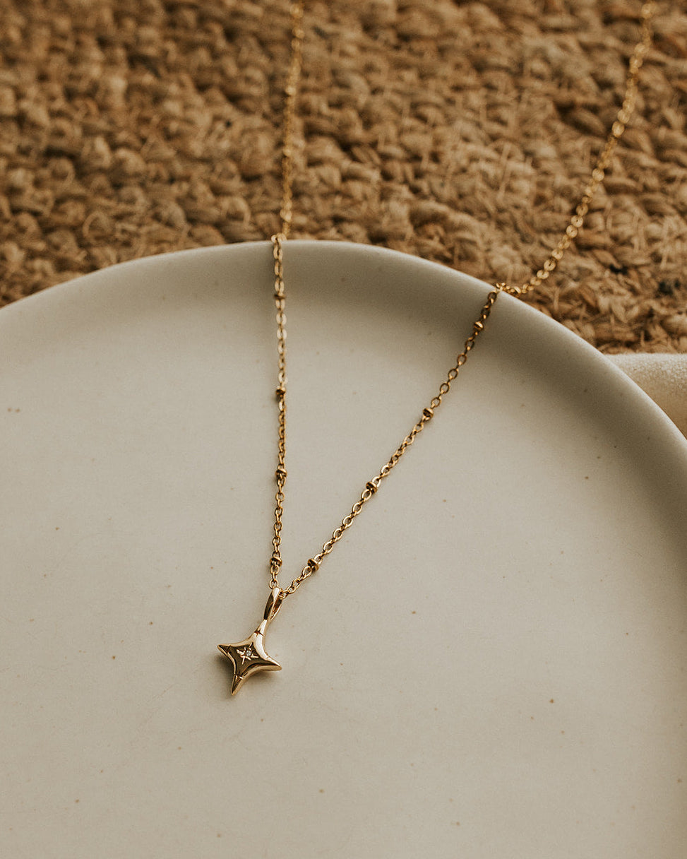 Materials: Gold-plated stainless steel chain, and pendant in vermeil with zircon — see our Materials and Care section.