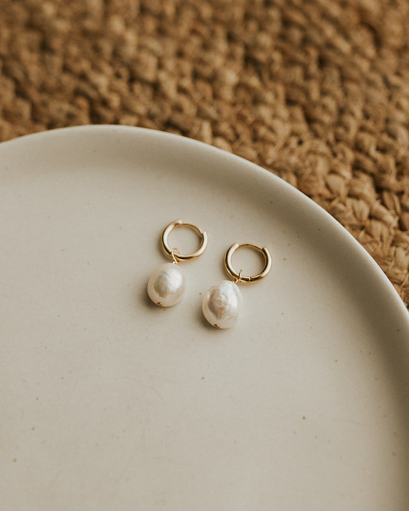 Our Alessia earrings will put you in the spotlight with the timeless elegance of large freshwater pearls and its sleeper-style hoops.