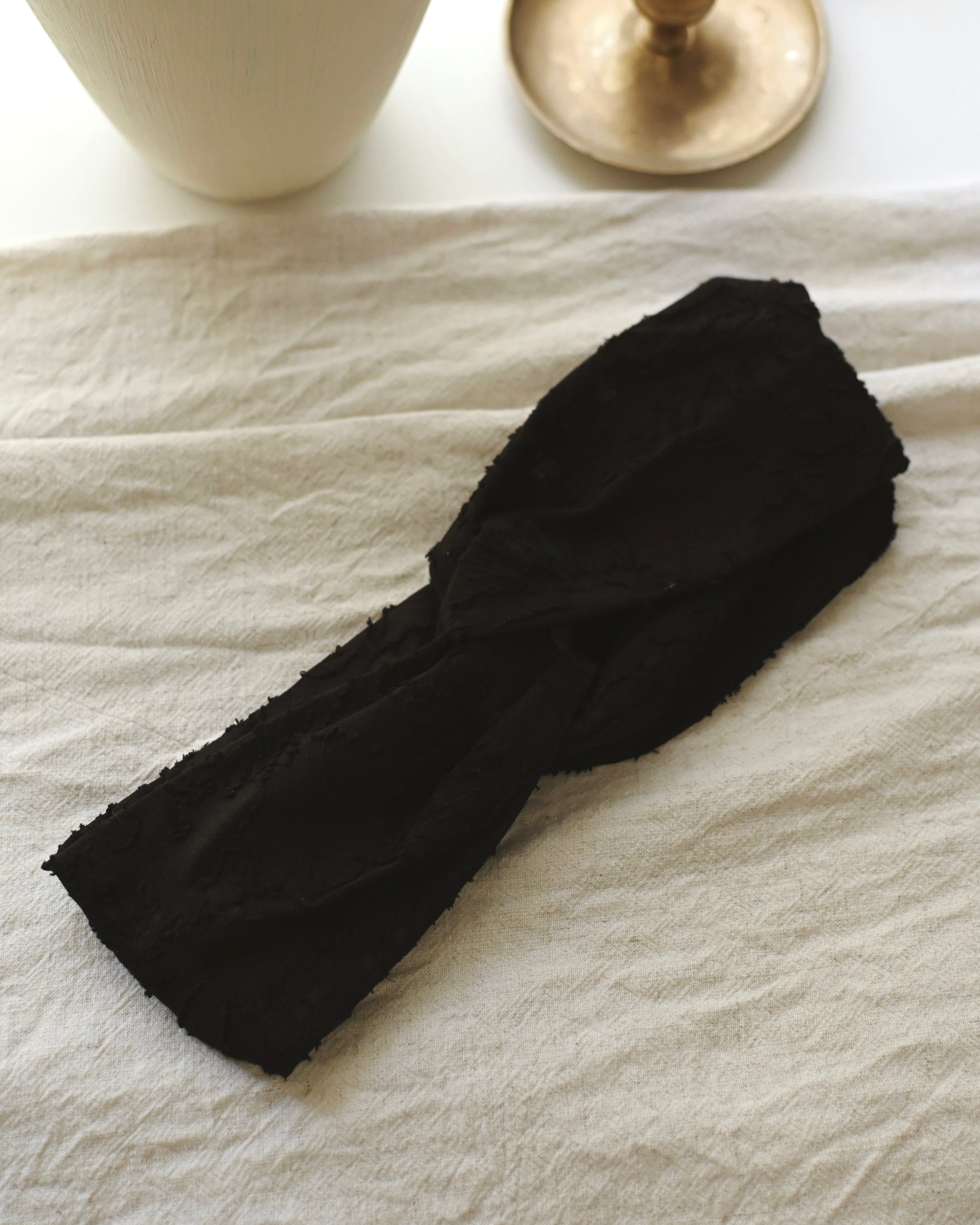 This headband is made from a textured fabric (95% polyester and 5% spandex) — lightweight, comfortable, and designed to stay perfectly in place.
