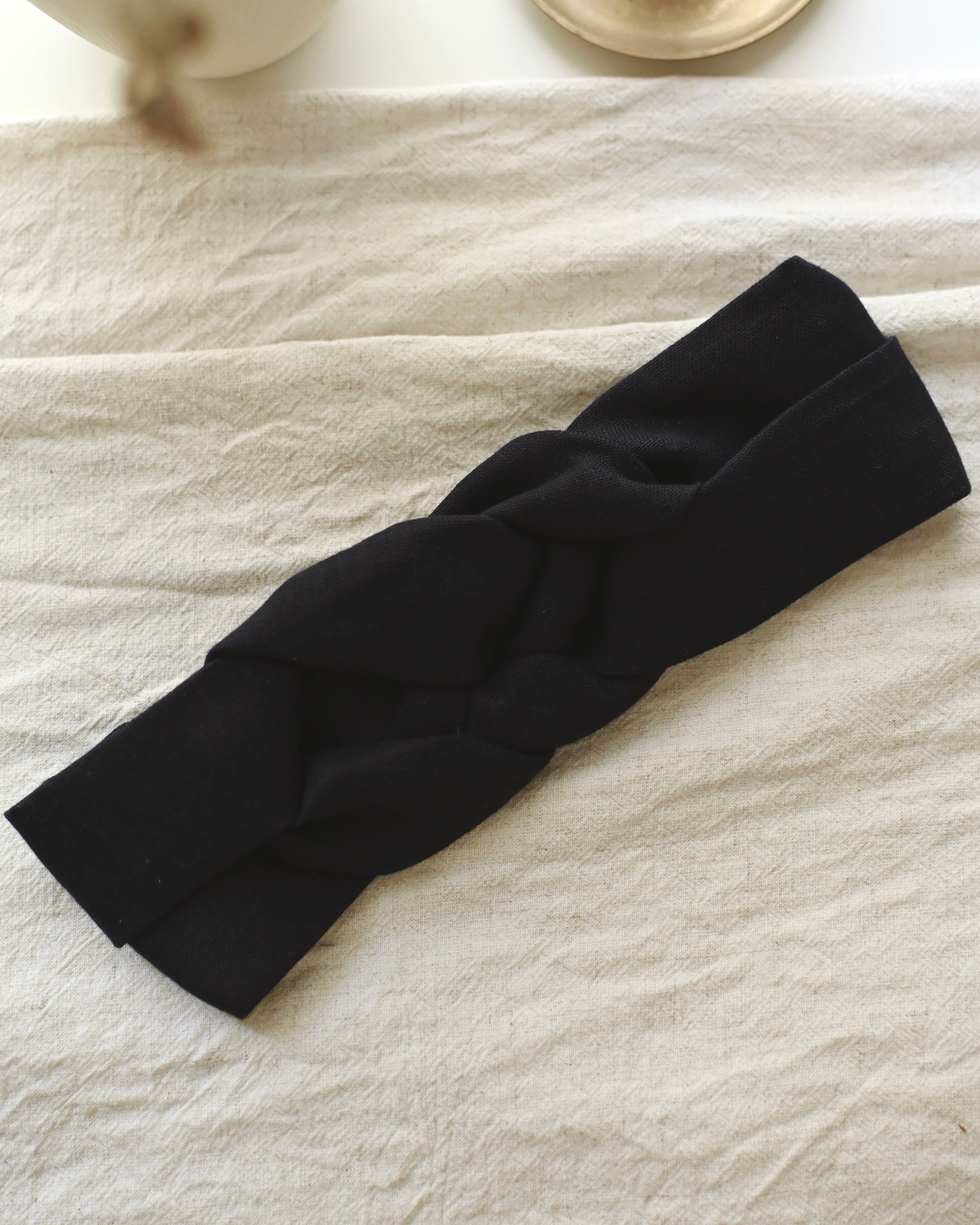This headband is made from 100% certified linen. The fabric is highly breathable, stays securely in place, and won’t shift once worn.